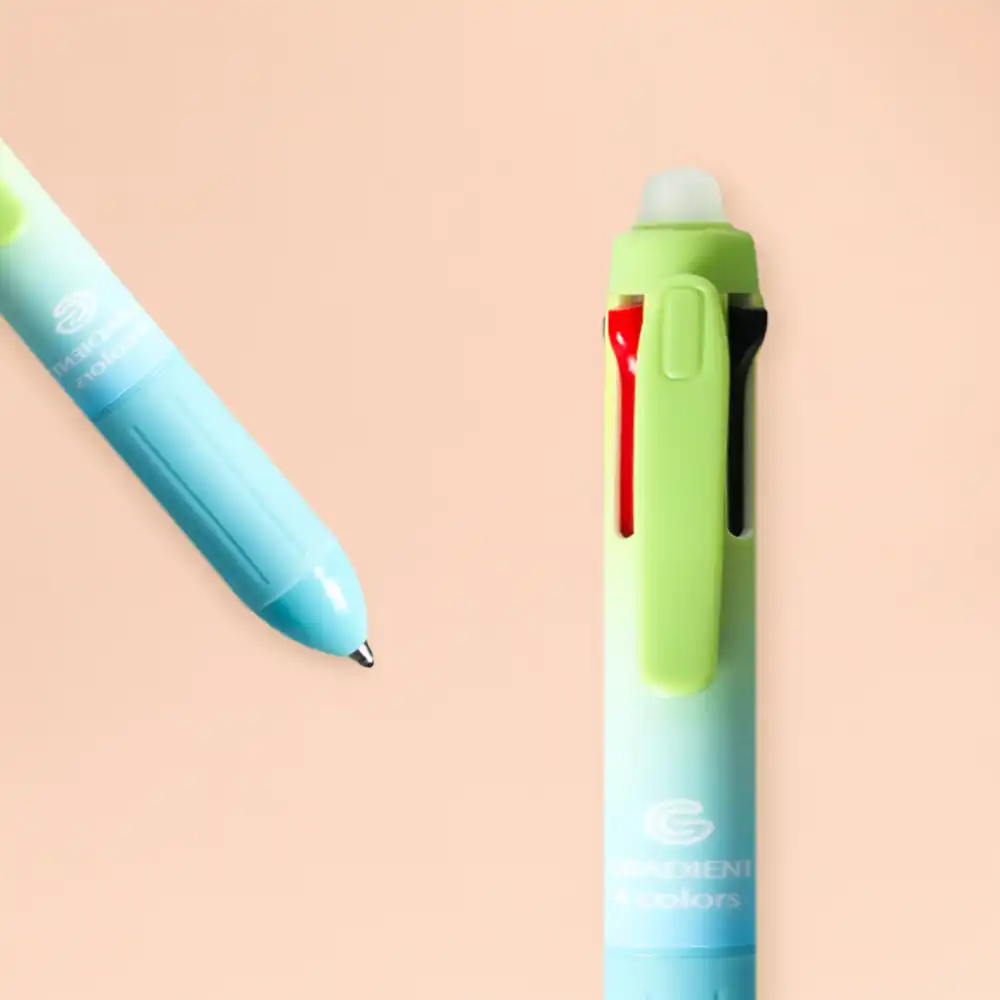 This 4 color ball pen in green and blue gradient design is perfect for school, office, and daily writing. It features multiple ink colors in one pen, allowing easy switching for notes, highlighting, and organization. Designed with a comfortable grip and smooth writing flow, it is ideal for students and professionals.