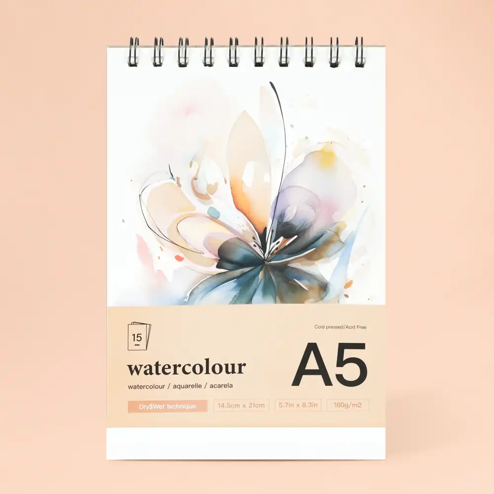 High-quality A5 watercolor sketchbook designed for smooth painting and drawing. Perfect for dry and wet techniques with durable acid-free paper.