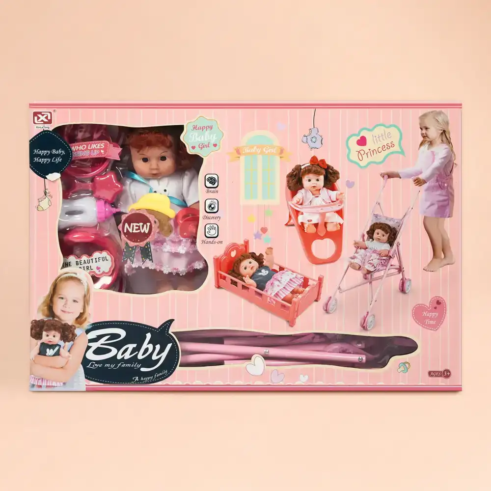 Make playtime magical with this adorable baby doll set with stroller and accessories, designed to bring joy, creativity, and nurturing fun to your child’s everyday play. This complete playset includes a cute baby doll, a foldable stroller, and multiple accessories that encourage imaginative role-play and storytelling.