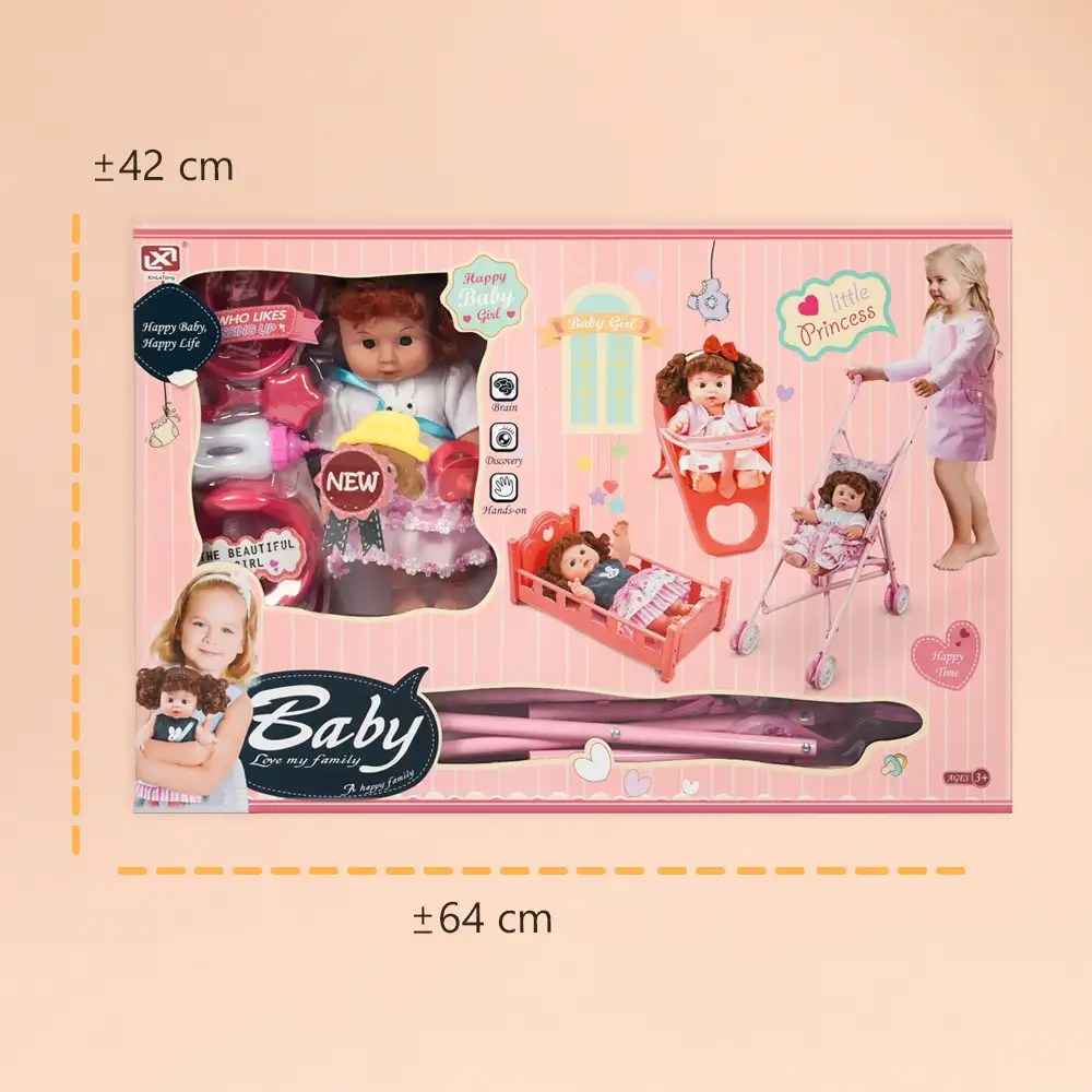 Whether used indoors or outdoors, this baby doll playset keeps children entertained for hours. It also makes a perfect gift for birthdays, holidays, or special occasions.