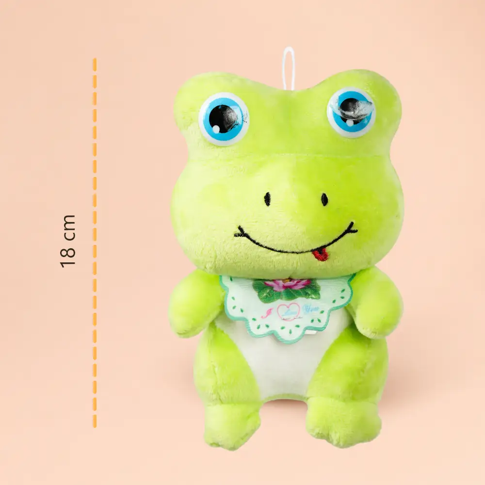 Cute green frog plush toy made from ultra-soft fabric, perfect for kids and gifting. Designed with big expressive eyes and a playful smile, this 18cm stuffed toy is ideal for cuddling, decoration, and everyday play. Lightweight and safe for children.