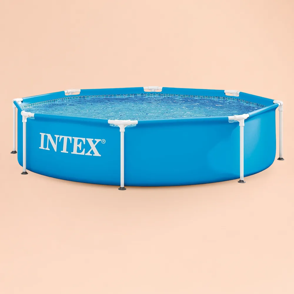 Make summer fun at home with the Intex round frame pool. Built with a strong metal frame and compact round design, this pool is perfect for kids and small families to enjoy safe and refreshing water play.