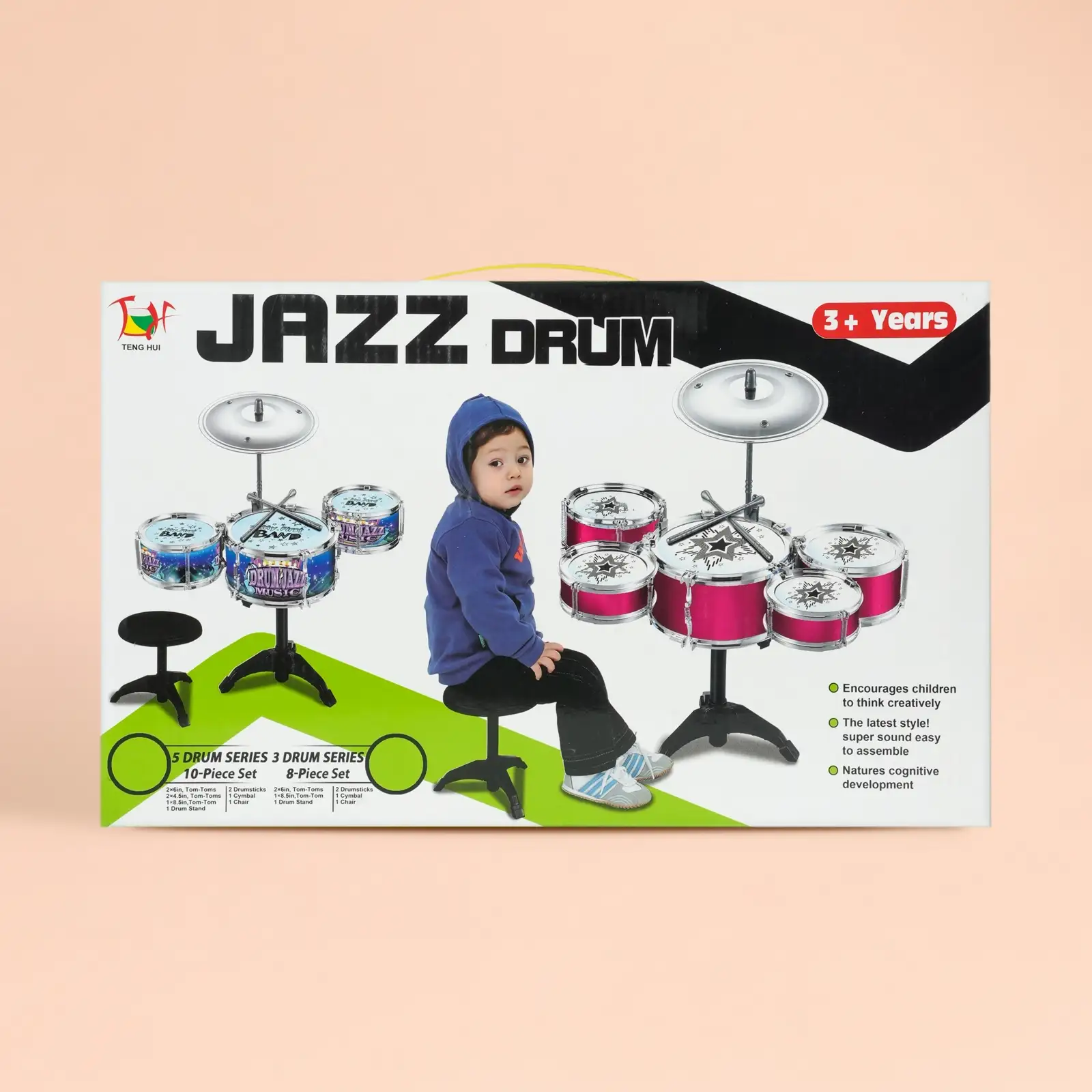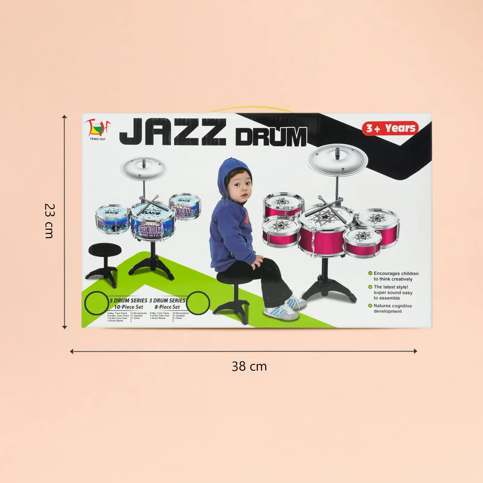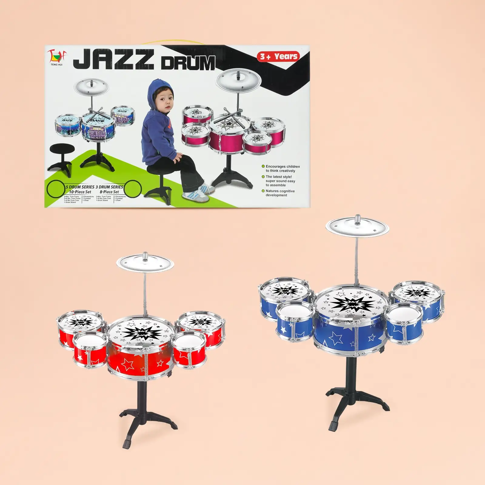 This kids drum set toy is a fun and interactive musical playset designed to introduce children to rhythm and music. Featuring multiple drums, sticks, and a stool, it helps develop creativity, coordination, and musical skills. Perfect for toddlers and kids, this jazz drum kit provides an exciting learning experience while encouraging active play and imagination.