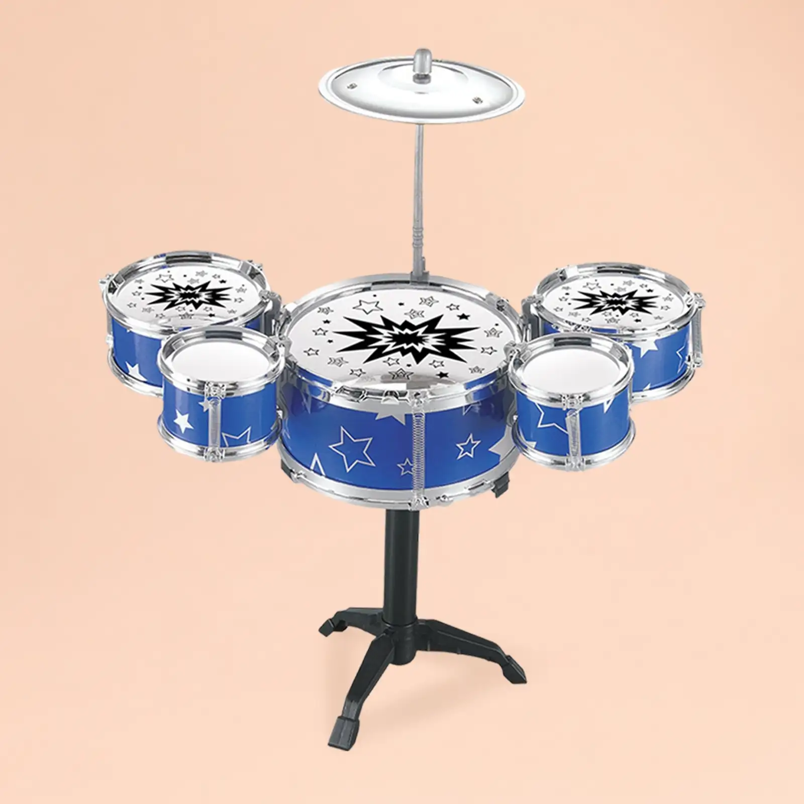 • Complete kids drum set with multiple drums and cymbal