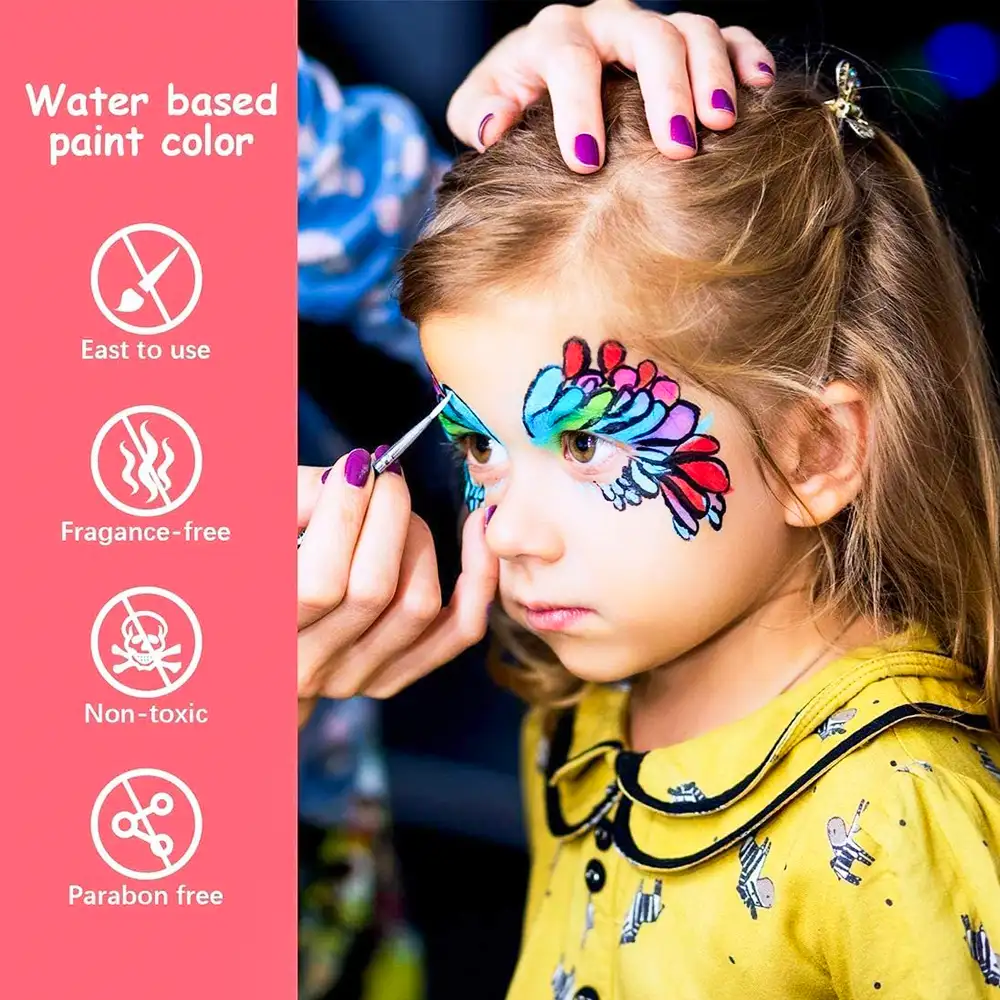 Kids Face Paint Kit Non-Toxic Easy Wash Face Painting Colors Set with Applicators
