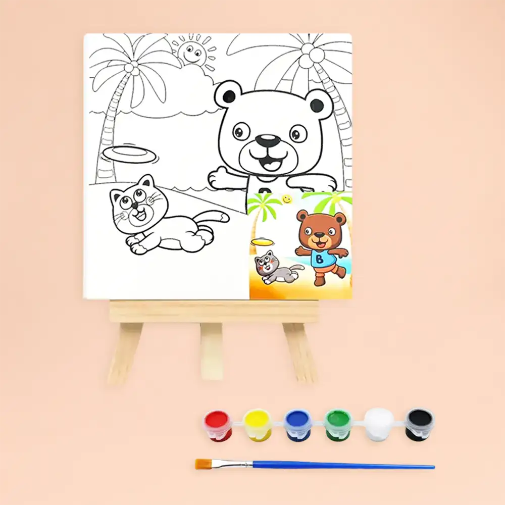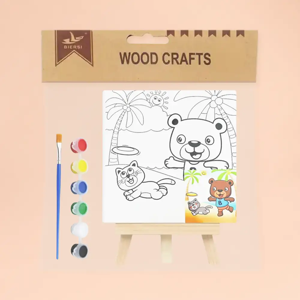 Fun and creative wooden painting craft kit for kids. Includes a pre-drawn board, paints, and brush to help children enjoy coloring and improve creativity.