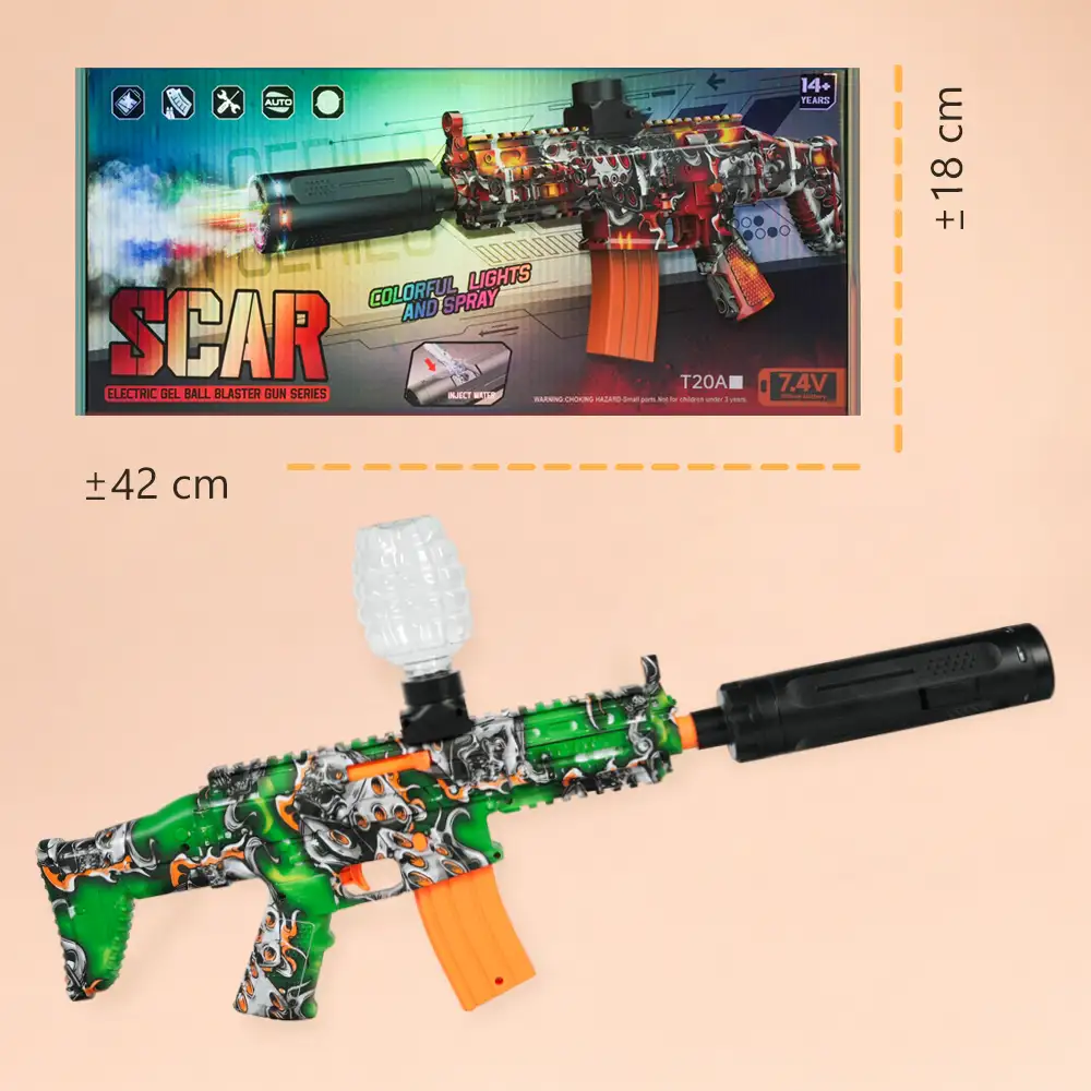 Enjoy exciting playtime with the M416 electric gel ball blaster. Designed with colorful lights and spray effects, this toy offers fun and safe outdoor action using soft water gel beads.