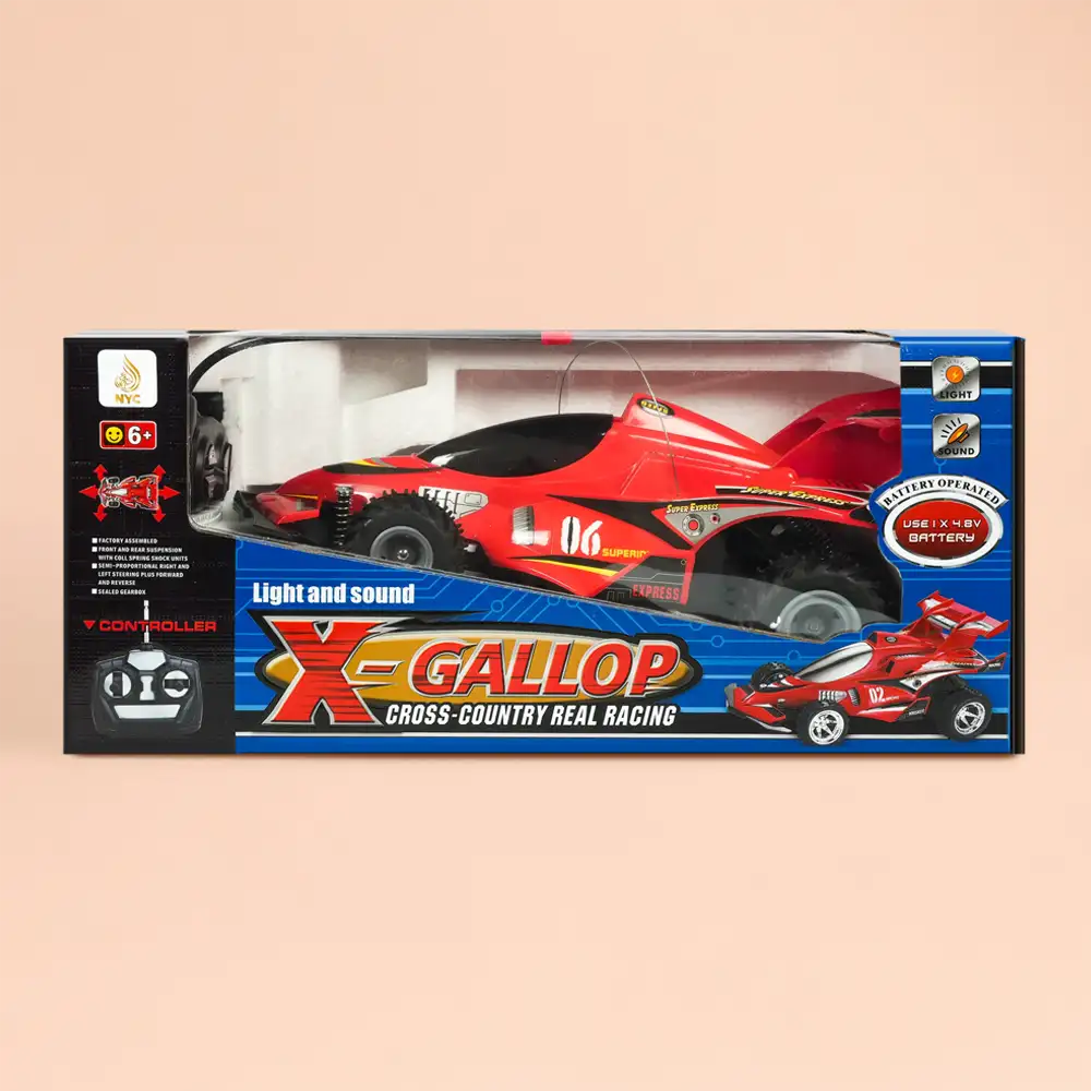 Experience high-speed fun with the X-Gallop remote control racing car, designed for exciting cross-country action. With realistic lights and sound effects, this RC car delivers an engaging playtime for kids.